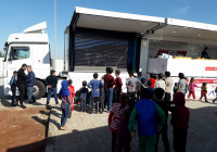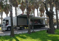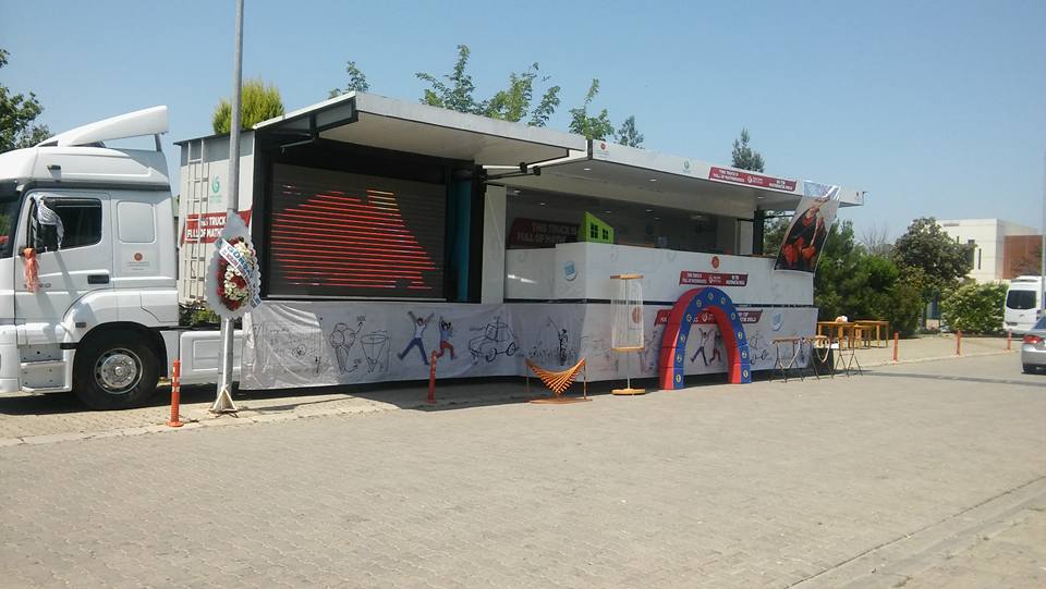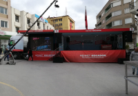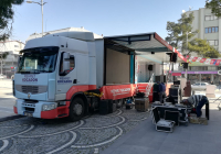 ENERJİ MİTİNG TIRI araçlarımız arasında en profesyonel olanlarından bir tanesidir.Ön tarafında 5 mm, 6 mt2 outdoor led ekran bulunur.Açılan sahne bölümü 50 mt2 dir.Açılan sahne bölümün üst çatısı 2 metre yukarıya doğru kalkmaktadır.Seçimler,Konserler,Etkinlikler için özel olarak dizayn edilmiş olan bu araç 10 dakikada açılabilmektedir.Line Array ses ve Profesyonel ışık sistemi takılabilmektedir.Enerji Modelimiz Cumhurbaşkanlığı Himayesinde oluşturulan Matematik Müzesi Tırı ile tüm avrupa ülkelerini dolaşarak yurt dışında ülkemizi çok iyi bir şekilde temsil etmiştir.